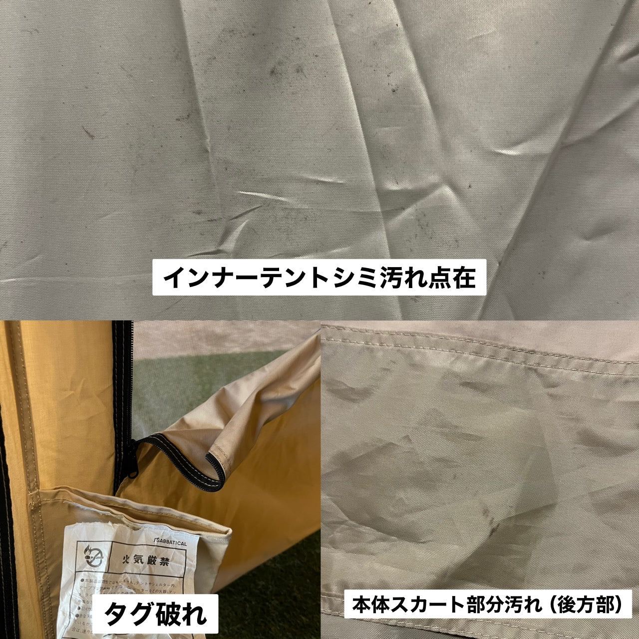 Product Condition | It is a used item. There is a tear in the tag part of the main body, there is a stain in the skirt part of the main body, and there are stains in the inner tent. There are no other notable stains or damages, so you can use it without any problems. |