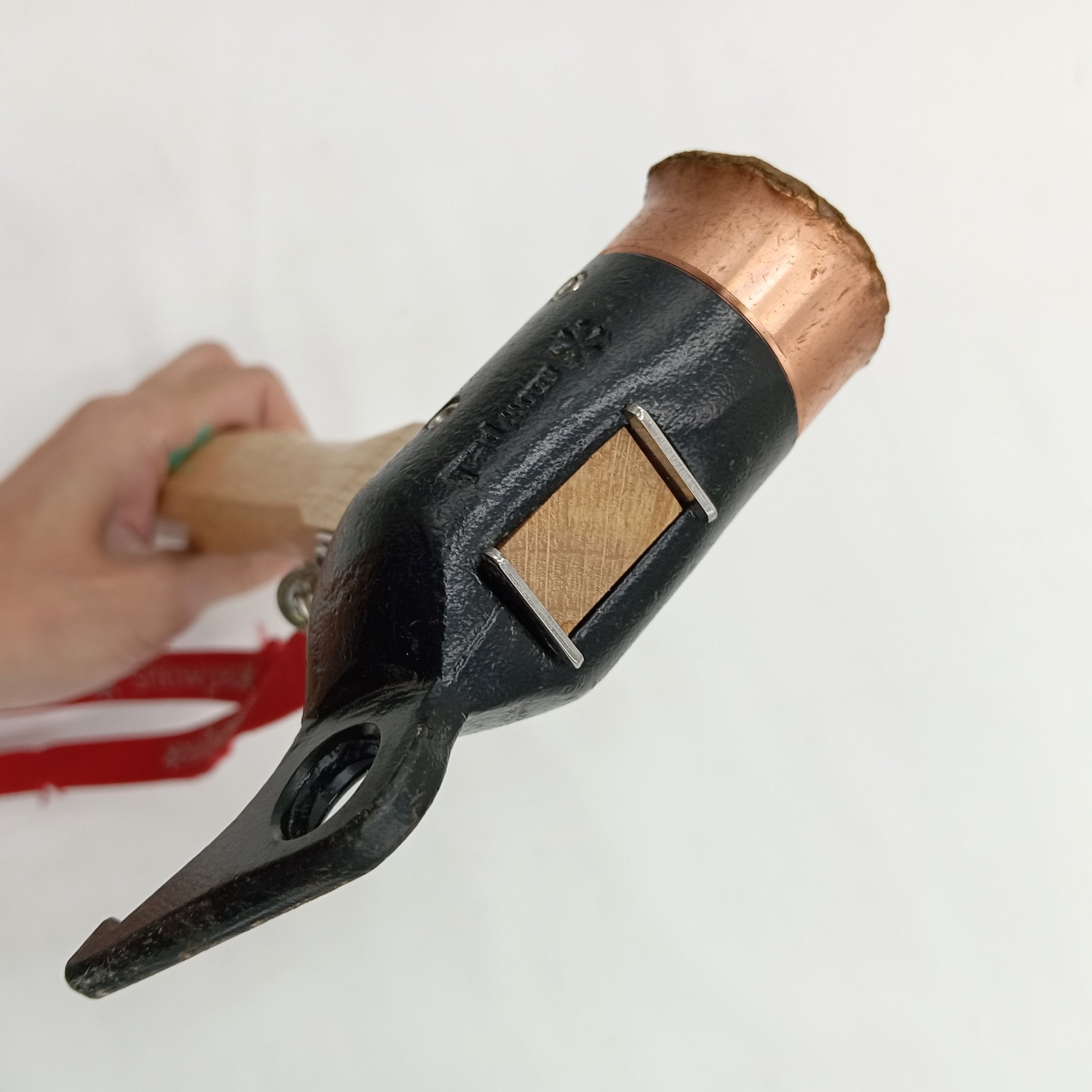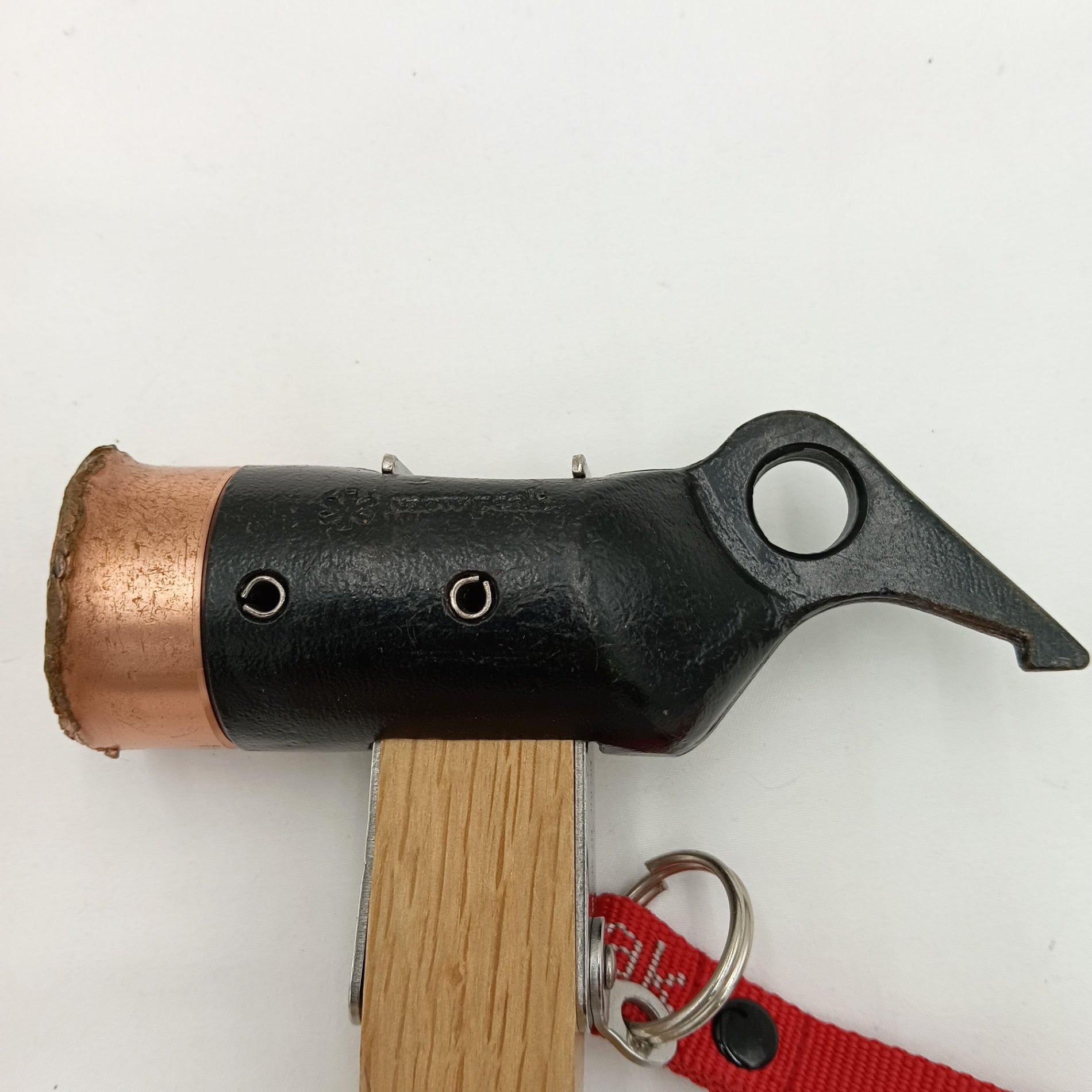 〇商品状態:ハンマーの丸頭部分に凹みなどの使用感と、ストラップ部分にほつれ・ダメージが見られます。