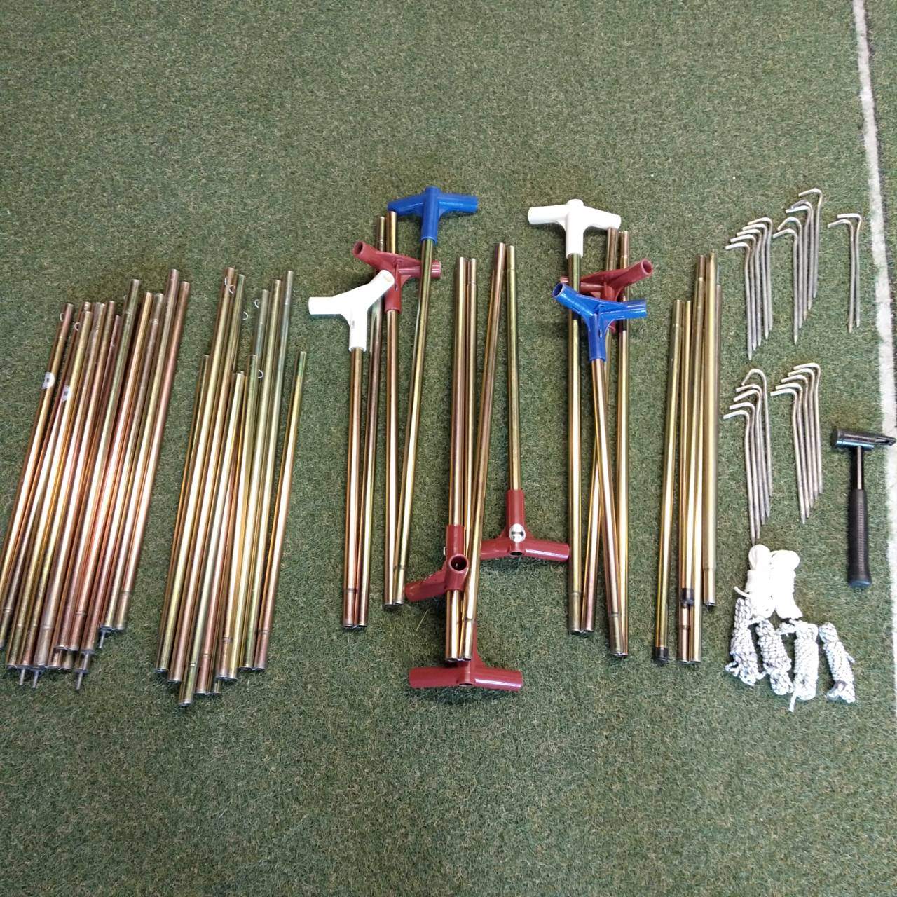 付属品 | 軒×3、合掌×6、脚(長)×4、脚(短)×2、キャノピーポール×2、ペグ×22、張り縄×12(内6本は幕体に付属)、ハンマー、キャリーバック×2、取扱説明書あり |