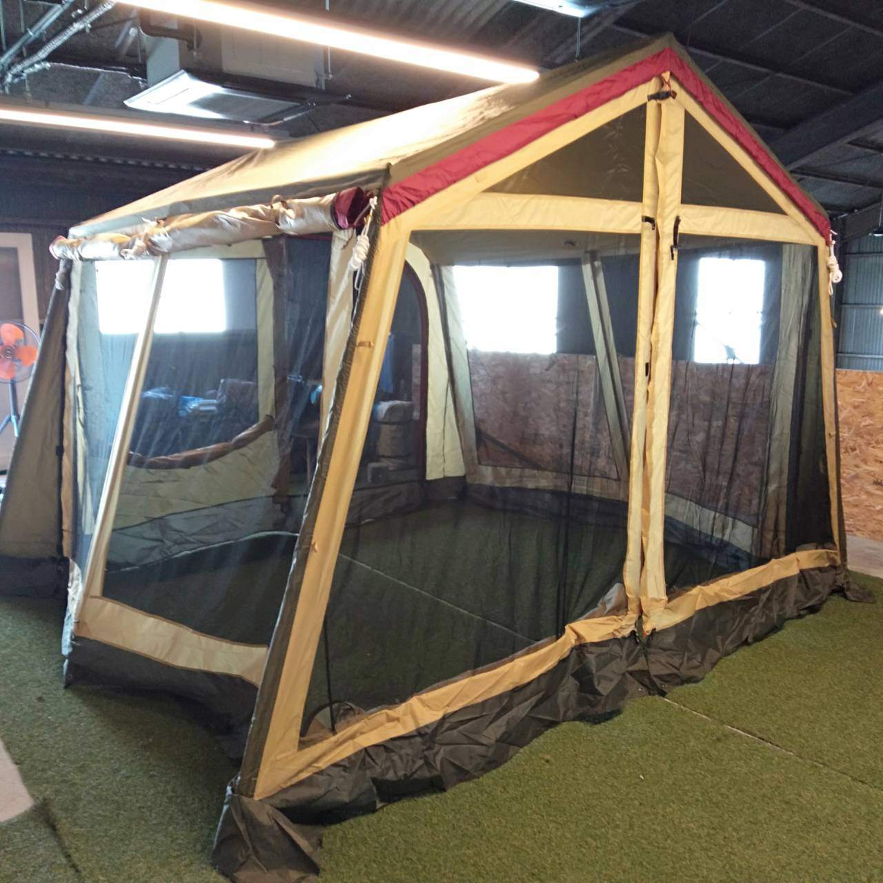 商品状態 | 全体的にシワなどの使用感はございますが幕体に目立つ汚れはございません。 スカート部分の内側に所々、汚れがございます(写真5、6枚目参照) 破れ、シームテープ剝がれ、ベタ付き、穴あき、焚火臭などはございません。 ポールに湾曲などは見られませんがサビや傷、汚れがございます(写真7枚目参照) 設営時、メインフレーム(屋根部分)の接続ができません(写真8、9、10枚目参照)がライナーシート、幕体を取り付けていただけましたら、ポールが繋がります。設営、ご使用は可能でございます。 |