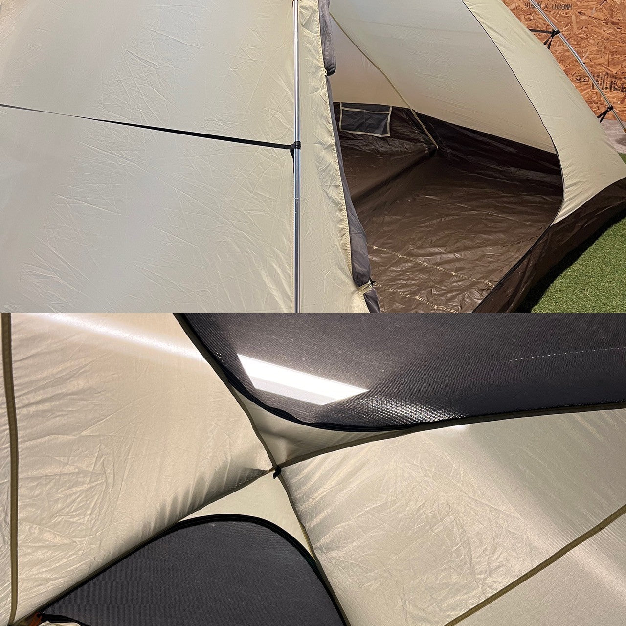 商品状態 | 使用感はございますが目立つ傷や穴あき、汚れ、ベタつき、焚火臭などはございません。 前室フレームに若干の歪みあり。 インナーテント(内側底面)、フライシート(内側)のシームテープに浮きあり。 インナーテント前後に若干の汚れあり。 フロアシート地面側に汚れあり。 |