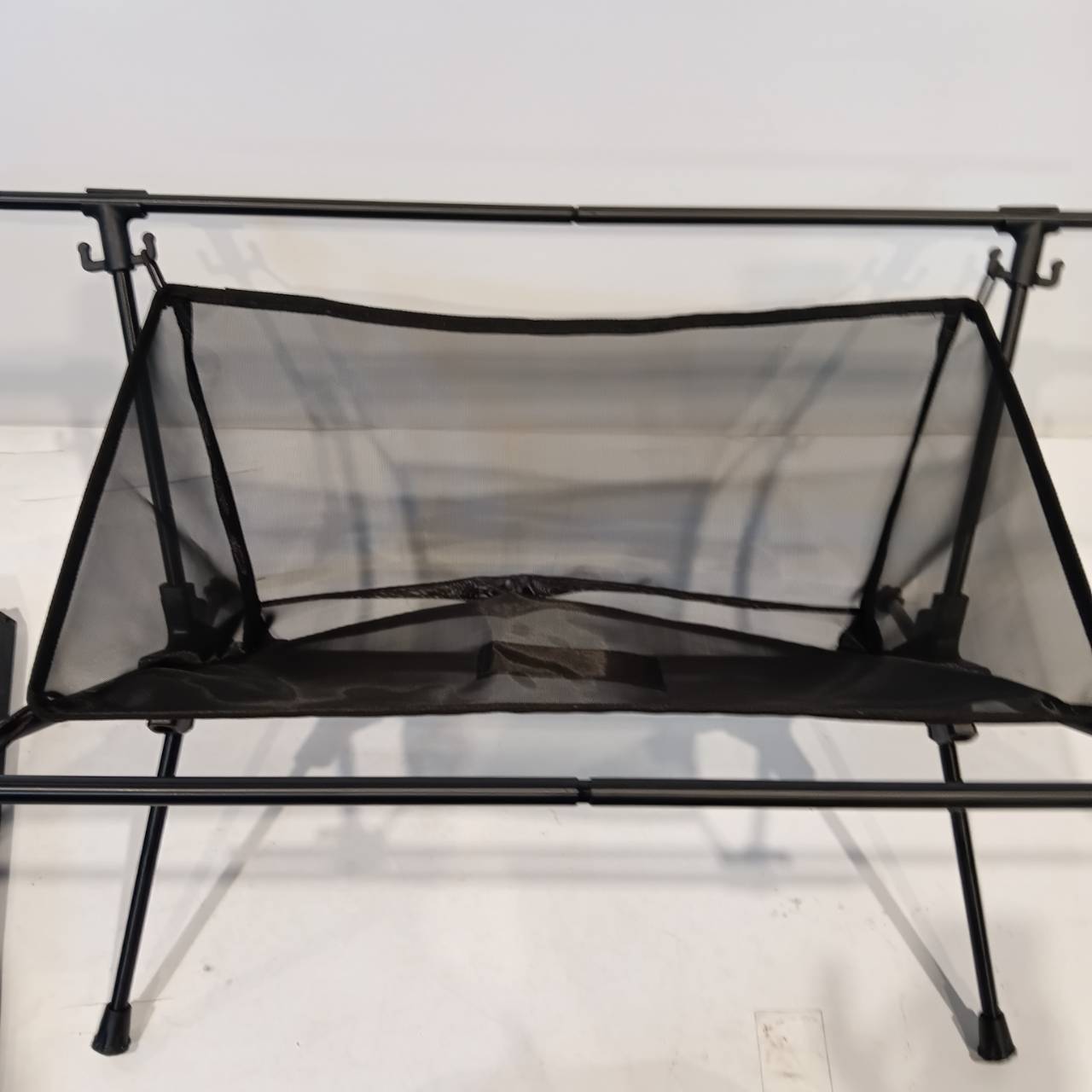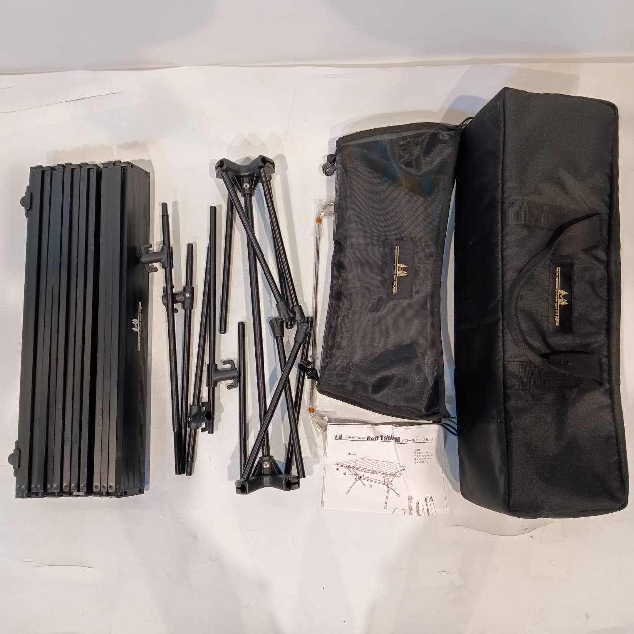 〇商品状態:こちらの商品は中古品になります。 目立つ傷、汚れ、使用感もなく、とてもキレイな状態です。 〇アイテム:ogawa(オガワ) ロールテーブル M(ブラック) 〇セット内容:テーブル一式、メッシュポケット、両側スチールハンガー(シルバー)×2、収納ケース、取扱説明書 〇セット内容メモ: 〇サイズ:82×56×高さ43/30cm 収納サイズ:61×20×18cm