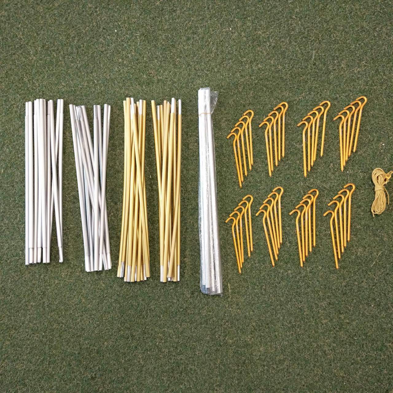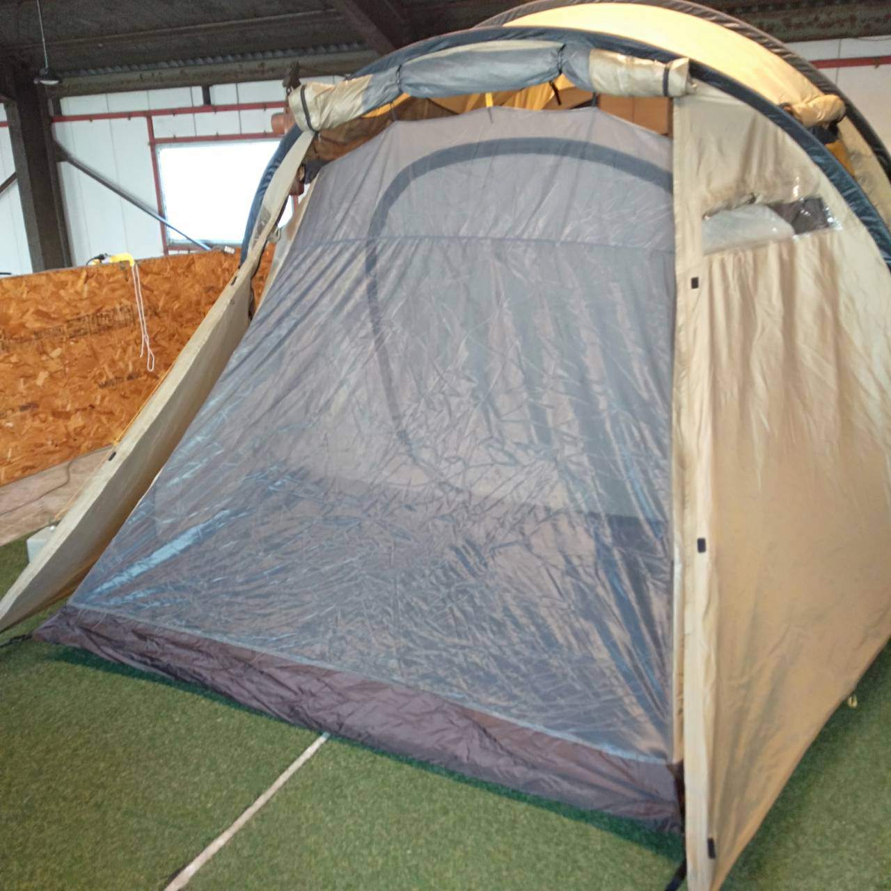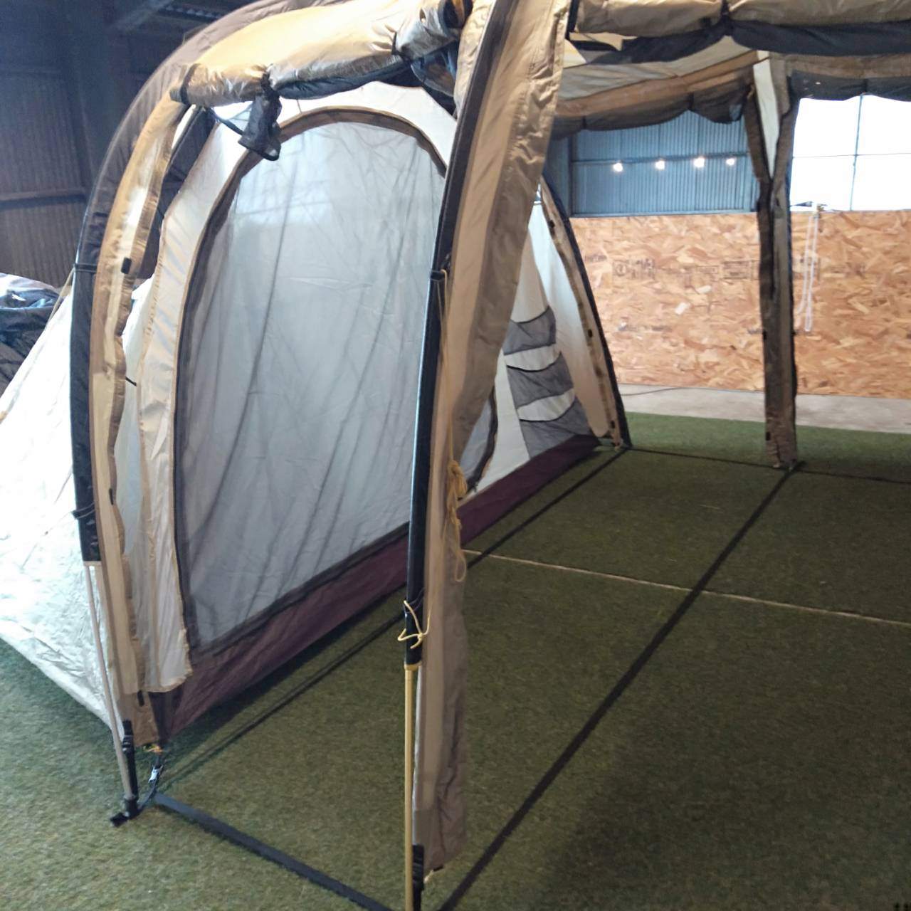 付属品 | インナーテント(大)、インナーテント(小)、グランドシート(インナーテント(大)用)、メインポール×4、キャノピーポール×2、ロープ×17(内15本テントに付属)、ペグ×20、リペアポール、キャリーバック、取扱説明書なし |