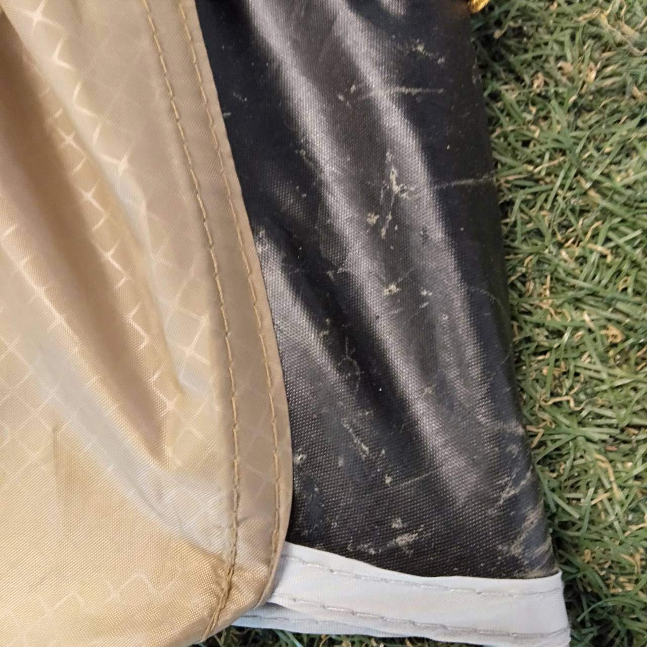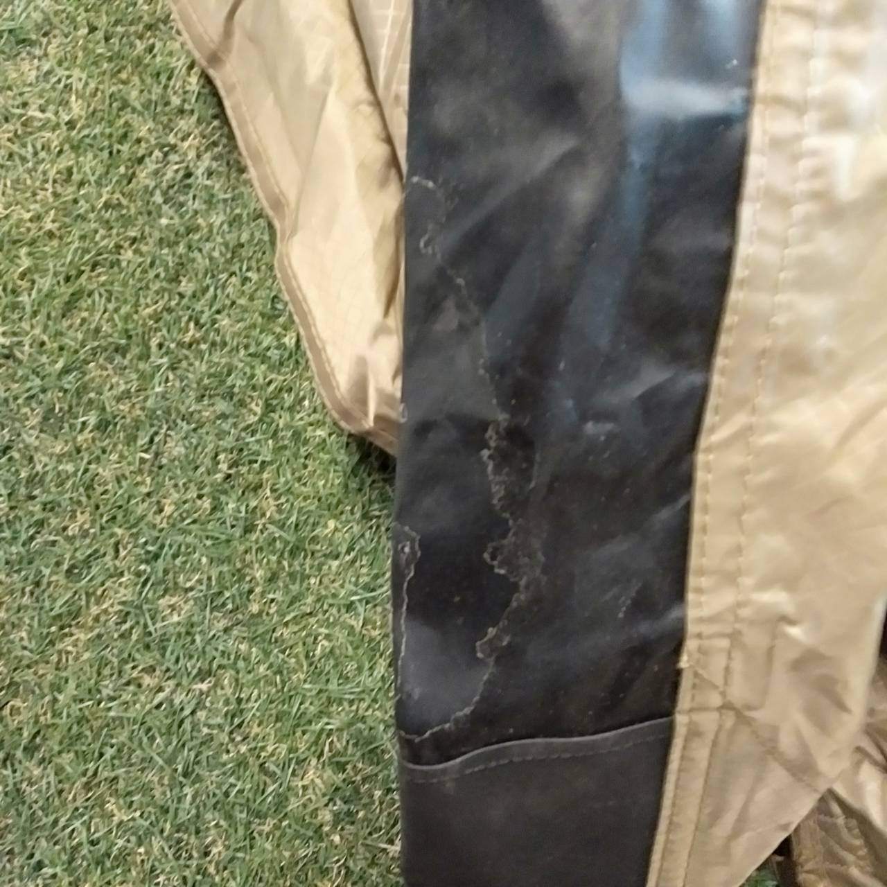 商品状態 | 全体的にシワなどの使用感はございますが、目立つ汚れなどは美品です。 破れ、穴あき、シームテープ剝がれ、べたつき、焚火臭などはございません。 メインポールを通す部分(黒い箇所)にのみベタつきと劣化がみられます(写真9、10枚目参照) |