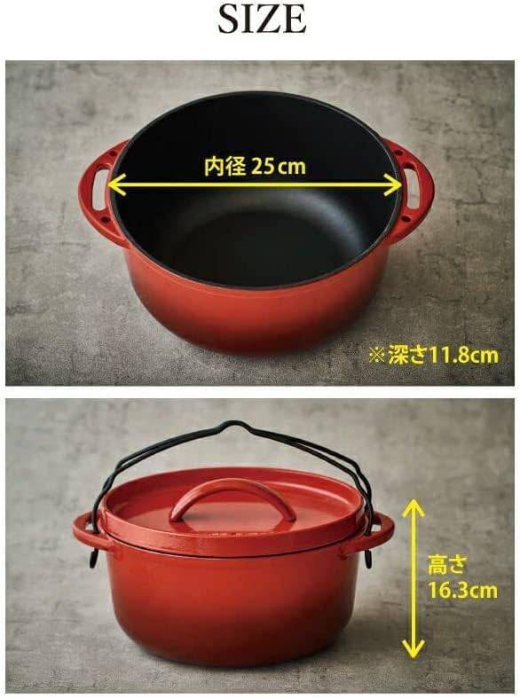 〇商品状態:撮影の為箱から出しました。未使用品となります。 〇アイテム:MIKAN(ミカン) ホーローダッチオーブン(レッド) 〇セット内容:本体、フタ、リフター、取扱説明書、箱 〇セット内容メモ: 〇サイズ:内径 25 cm×高さ16.3cm(深さ11.8cm) ※リフターを除く[10インチ相当]
